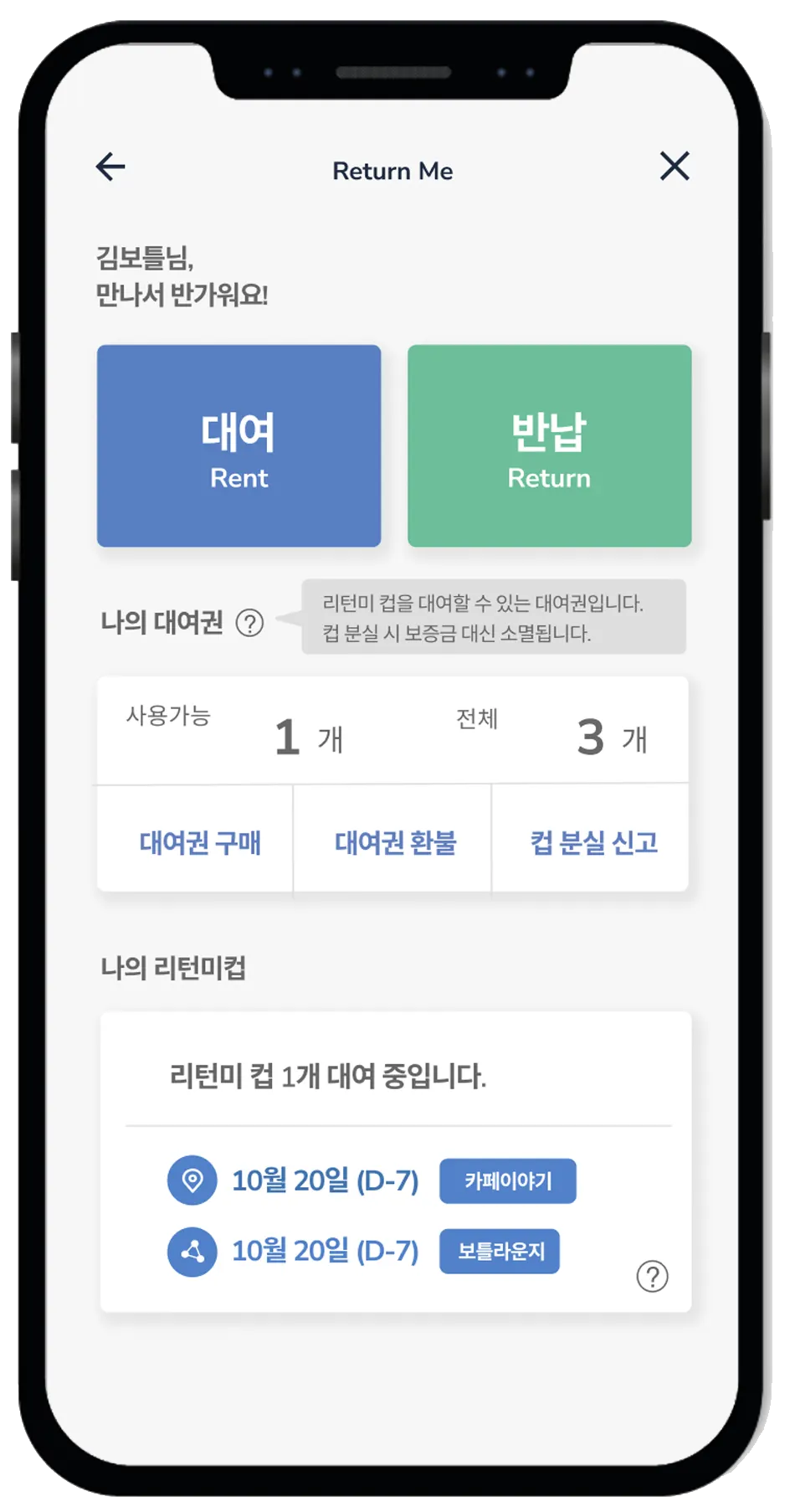 다회용 컵을 대여하는, 리턴미 솔루션